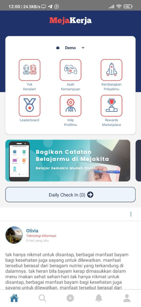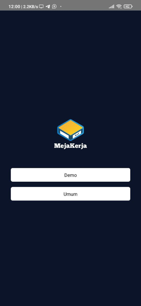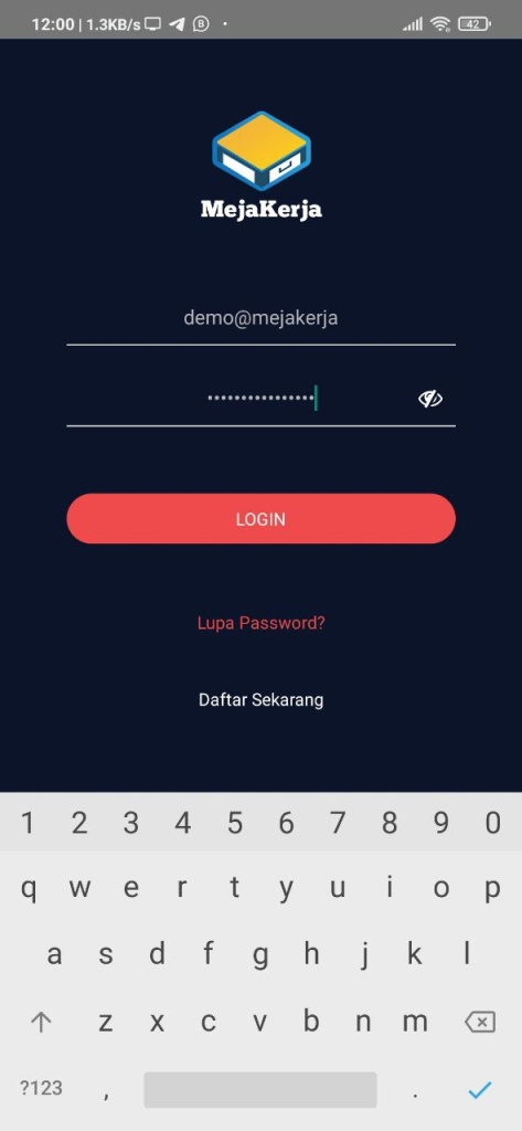 Halaman Login Mobile Application Mejakerja berada setelah introduction screen Mejakerja.